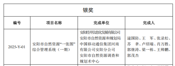 近日,2025河南省地理信息產(chǎn)業(yè)優(yōu)秀工程評(píng)選結(jié)果通報(bào)。由安陽經(jīng)開信息化發(fā)展有限公司聯(lián)合安陽市自然資源和規(guī)劃局、中國(guó)移動(dòng)通信集團(tuán)河南有限公司安陽分公司共同申報(bào)的“安陽市自然資源‘一張圖’綜合管理系統(tǒng)(一期)項(xiàng)目”從全省申報(bào)項(xiàng)目中脫穎而出,成功斬獲銀獎(jiǎng)。