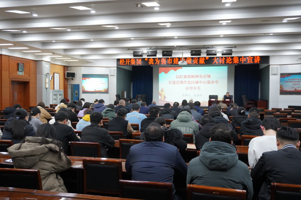 為推動(dòng)“我為強(qiáng)市建設(shè)做貢獻(xiàn)”大討論在集團(tuán)深入開展,營造人人了解、人人支持、人人爭先、人人參與強(qiáng)市建設(shè)的良好氛圍,3月6日上午,經(jīng)開集團(tuán)在財(cái)政局二樓綜合會(huì)議室組織召開“我為強(qiáng)市建設(shè)做貢獻(xiàn)”大討論集中宣講會(huì),邀請市委大討論工作宣講團(tuán)成員、市農(nóng)業(yè)農(nóng)村局四級調(diào)研員史海平同志為與會(huì)同志作專題宣講,集團(tuán)黨委委員、副總經(jīng)理左長虹主持會(huì)議。