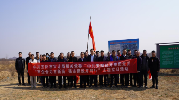 春回大地萬(wàn)物復(fù)蘇,植樹添綠正在當(dāng)時(shí)。在第46個(gè)植樹節(jié)來(lái)臨之際,3月14日,經(jīng)開集團(tuán)黨委與市審計(jì)局機(jī)關(guān)黨委30余人來(lái)到殷都區(qū)磊口鄉(xiāng)國(guó)儲(chǔ)林項(xiàng)目基地開展了以“審企合力育新苗,強(qiáng)市建設(shè)并肩行”為主題的黨日活動(dòng)。經(jīng)開集團(tuán)黨委書記、董事長(zhǎng)齊方,安陽(yáng)市審計(jì)局黨組成員、市政府投資和經(jīng)濟(jì)責(zé)任審計(jì)中心主任李著亮參加本次活動(dòng)。