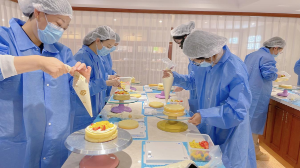 活動現(xiàn)場,集團邀請到經驗豐富的專業(yè)烘焙老師,為大家細致講解了蛋糕制作的每一個步驟與技巧。女職工們興致勃勃地開啟蛋糕制作之旅,有的用水果擺出花朵造型,有的用奶油勾勒出可愛圖案,一個個造型獨特、色彩斑斕的蛋糕在她們手中誕生。女職工們相互交流經驗,歡聲笑語回蕩在活動現(xiàn)場。