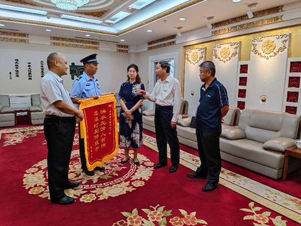 2021年7月28日下午3點(diǎn),“感謝你們,我這條命是你們撿回來的!”安勤公司員工曹運(yùn)玲拿著“洪水無情人有情,危難時刻伸援手”的錦旗在市黨政綜合大樓一樓會客室送到市黨政綜合樓保安中隊(duì)中隊(duì)長戶永豐手中,感謝他們的救命之恩。安陽市機(jī)關(guān)事務(wù)中心、三級調(diào)研員陳紹華,機(jī)關(guān)事務(wù)中心、保衛(wèi)科長孫文勝;安陽市安勤商務(wù)公司董事長兼總經(jīng)理劉全喜,安勤商務(wù)公司副總經(jīng)理王軍;安陽經(jīng)開集團(tuán)黨委委員副總經(jīng)理劉志霞;洹河保安公司黨委委員、副總經(jīng)理魏東,總經(jīng)理助理、人防分公司經(jīng)理李向陽,參加此次活動。