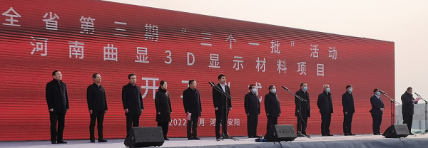 2022年1月4日上午,集團(tuán)副總經(jīng)理溫惠玲陪同市委副書記、市紀(jì)委書記黃明海,市政府副市長王新亭,市政府副市長、安陽縣委書記王紅兵以及河南投資集團(tuán)有限公司、市城鄉(xiāng)一體化示范區(qū)、東旭集團(tuán)、新石器公司等相關(guān)領(lǐng)導(dǎo)前往示范區(qū)參加我市“三個一批”項(xiàng)目開工儀式。在開工儀式活動現(xiàn)場,黃明海書記宣布全市第三期“三個一批”活動暨河南曲顯3D顯示材料項(xiàng)目開工。