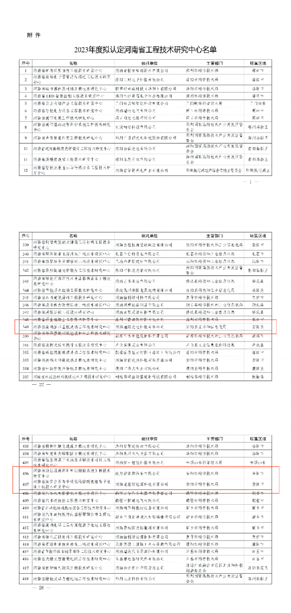 2024年1月4日河南省科學(xué)技術(shù)廳發(fā)布《關(guān)于2023年度擬認定河南省工程技術(shù)研究中心名單的公示》,擬認定安陽經(jīng)開集團投資企業(yè)德力新能源汽車有限公司、河南克能新能源科技有限公司和河南旭陽光電科技有限公司共三家企業(yè)建設(shè)的省級工程研究技術(shù)中心。近日,2023年度河南省工程技術(shù)研究中心公示已結(jié)束,上述三家企業(yè)成功獲得認定。