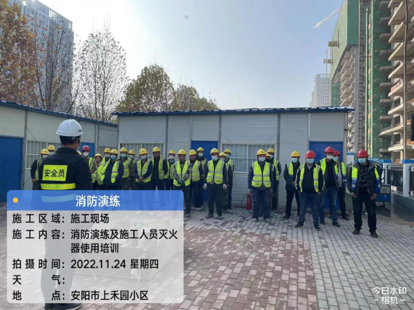 火災(zāi)防患于未然,消防責(zé)任重于泰山,為進(jìn)一步做好項(xiàng)目現(xiàn)場(chǎng)消防安全管理工作,增強(qiáng)全員消防安全意識(shí),提高突發(fā)事件應(yīng)急處置能力,上禾園項(xiàng)目組織開展了消防應(yīng)急預(yù)案演練。此次演練以垃圾桶引燃導(dǎo)致發(fā)生火災(zāi)為演練背景。接到險(xiǎn)情報(bào)警后,項(xiàng)目應(yīng)急小組立即奔赴現(xiàn)場(chǎng)開展撲救,疏散小組引導(dǎo)現(xiàn)場(chǎng)工人迅速、有序地撤離到安全地方。