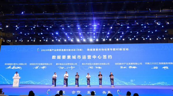 6月20日,安陽(yáng)經(jīng)濟(jì)開(kāi)發(fā)集團(tuán)有限公司與鄭州數(shù)據(jù)交易中心建立合作關(guān)系,并在2023年鄭州產(chǎn)業(yè)轉(zhuǎn)移發(fā)展對(duì)接活動(dòng)大會(huì)就鄭數(shù)交易城市運(yùn)營(yíng)中心落地安陽(yáng)進(jìn)行簽約。