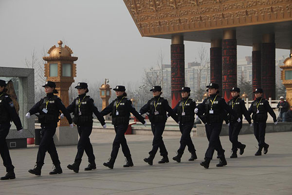 中國文字博物館特保大隊女子中隊執(zhí)勤中。